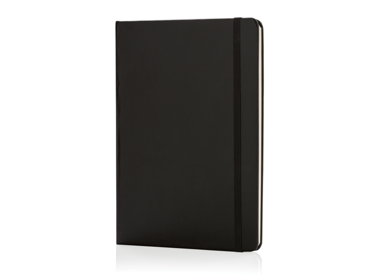 Linieret A5 hardcover basic notesbog med elastiklukning samt bånd til sideadskillelse. 144 siders 70g/m2 papir. Cremefarvede sider.