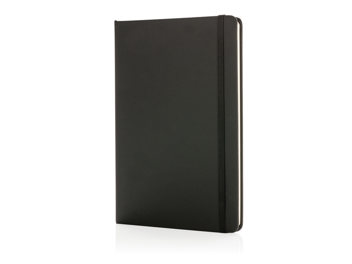 Linjeret A5 hardcover PU classic notesbog med elastisk lukning og sort bånd. 144 sider på 70 g/m2. Cremefarvede sider.