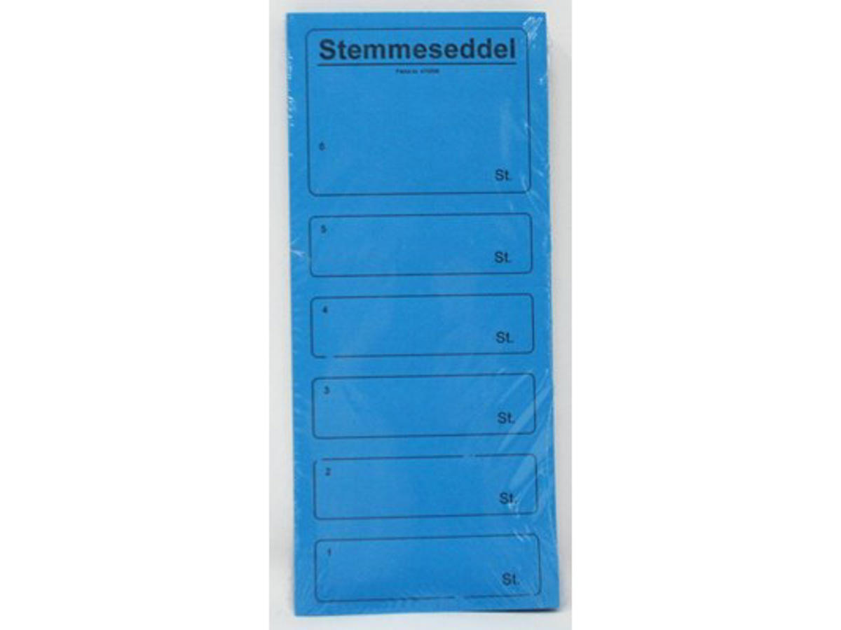 Klassiske stemmesedler, der er ideelle til afstemninger ved bestyrelsesmøder og generalforsamlinger. Uanset om det er i en beboerforening, partiforening, idrætsforening eller ungdomsklub, sikrer disse stemmesedler, at du nemt kan holde styr på antallet af uddelte stemmesedler og sikre korrekt nummerering ved afstemningen.