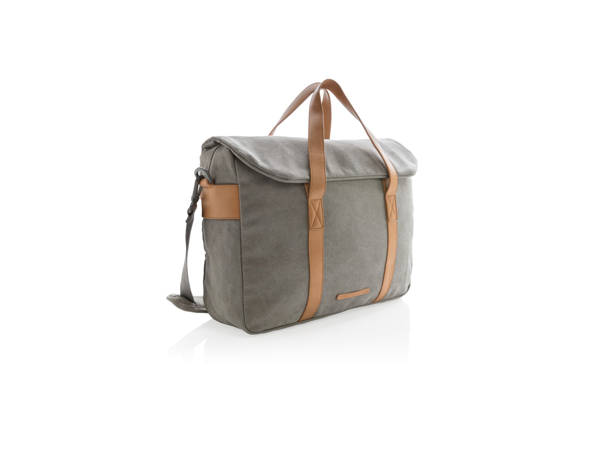 Bær din computer med stil i denne naturlige og holdbare kanvas computertaske. Tasken er polstret, så den beskytter din computer. Detaljer i flot imiteret skind tager udseendet til det næste niveau. Passer til bærbare computere op til 15,6", dokumenter og tablets. Inklusive aftagelig og juster skulderrem. PVC-fri.
