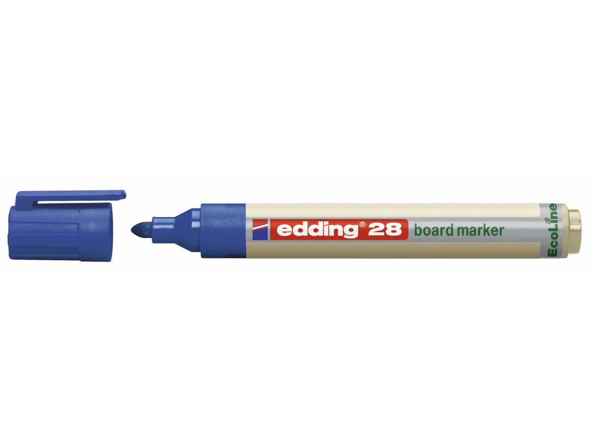 • Edding 28 Ecoline tavlemarkør er genopfyldelig og miljøvenlig med mindst 90% af plastikkomponenterne fremstillet af genbrugsmaterialer.