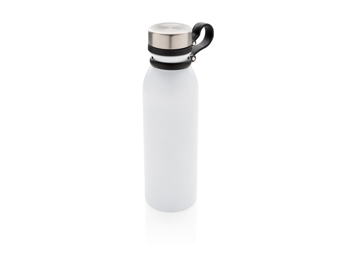 Leakproof kobber isoleret vakuum flaske med sort silikone strop. Enmandsbetjent så ingen bekymring om at holde låget. Dobbeltvægget vakuum konstruktion med kobber isolering der gør at den kan holde varmt i op til 8 timer og koldt i op til 24 timer. Konstruktionen forebygger kondens på den udvendige side. Indhold: 600 ml.