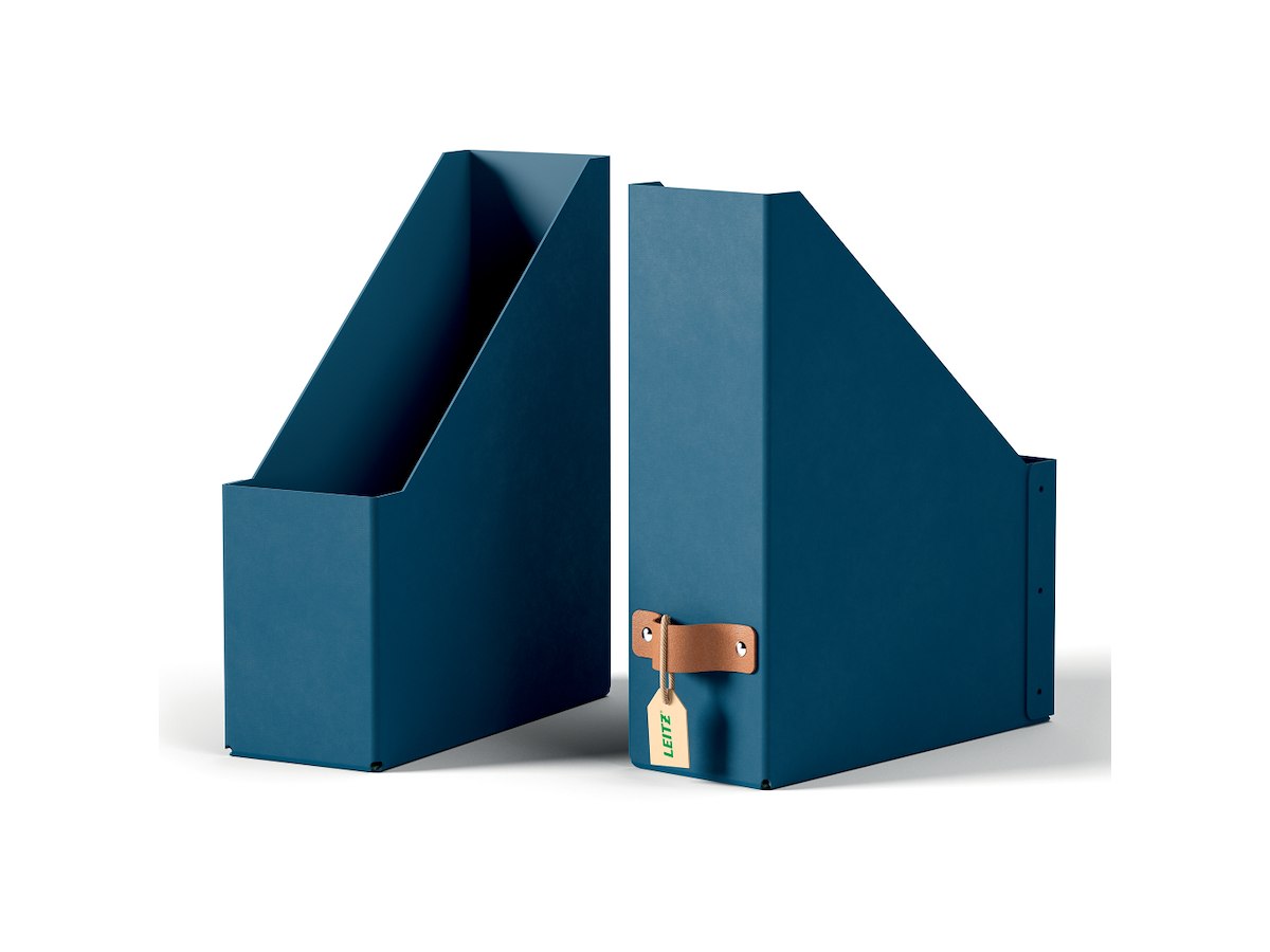 Leitz tidsskriftsamlere leveres fladt pakket og er hurtige og nemme at samle uden brug af værktøj. Disse tidsskriftholder er lavet af 100 % recirkuleret FSC-certificeret pap og kan skilles ad, så de kan recirkuleres 100 % efter brug.
