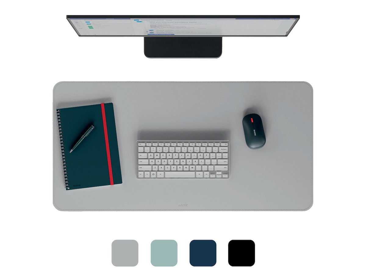 • Forbliv produktiv og føl dig godt tilpas, uanset hvor din arbejdsdag bringer dig hen, med Leitz Large skriveunderlag. Det er en vandtæt skrivebordsbeskyttelsesmåtte, der er nem at rengøre, og som holder dit skrivebord pænt. Den store overflade på 80 x 40 giver plads til tastatur, mus, notesblok og tilbehør og beskytter dit skrivebord mod ridser, pletter, spild og skrammer. Kompatibel med al laser- og optisk musesporing. Kan rulles sammen med en strop, der holder den fast, så den er nem at transportere og dele på skrivebordet. Plastfri emballage. Indbydende mat farve med et minimalistisk design og afrundede hjørner. Multifunktionel brug som skriveunderlag og musemåtte, hvilket gør den velegnet til både arbejde og fritid. HAV DET GODT med Leitz.