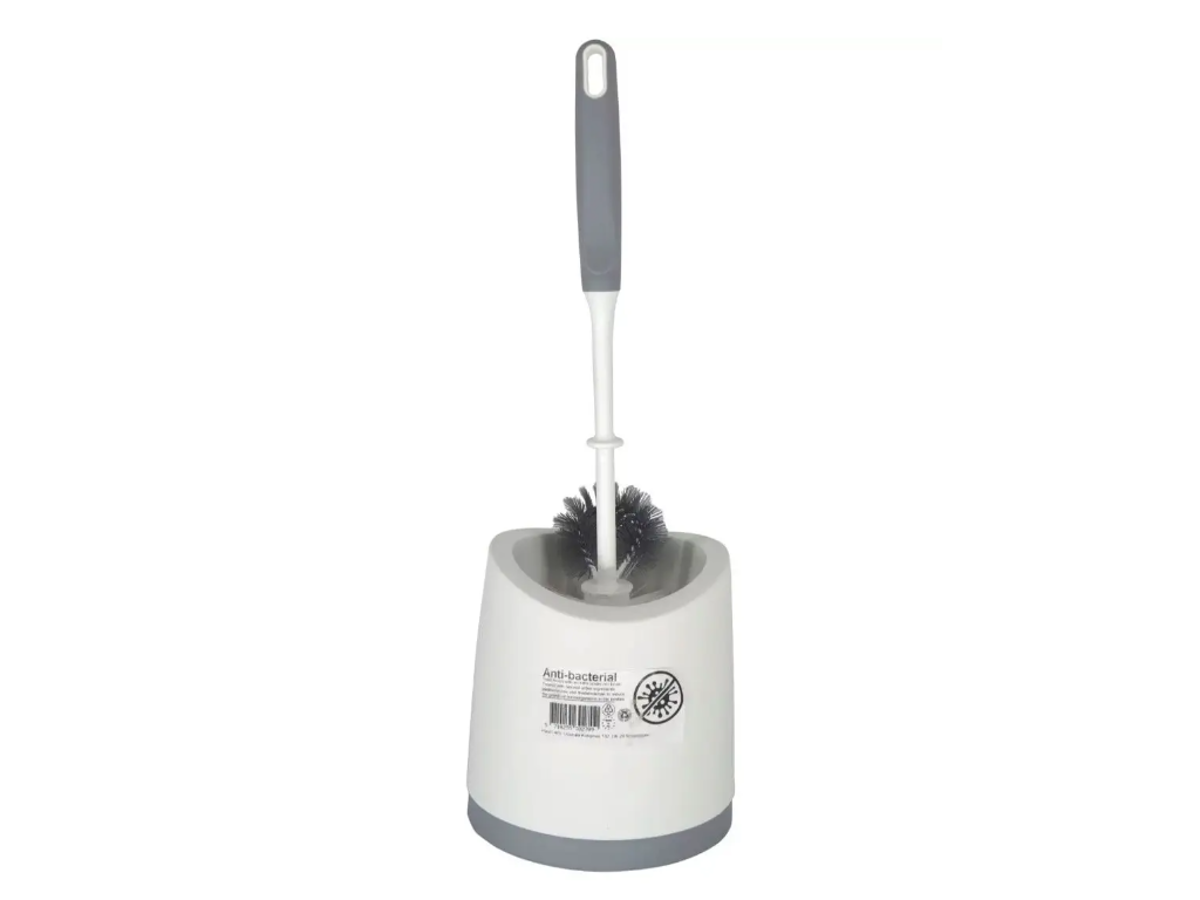 Toiletbørsten er udstyret med en almindelig toiletbørste samt en praktisk kantbørste, der let renser kanterne på toilettet. Gummihåndtaget gør børsten behagelig at gribe om.