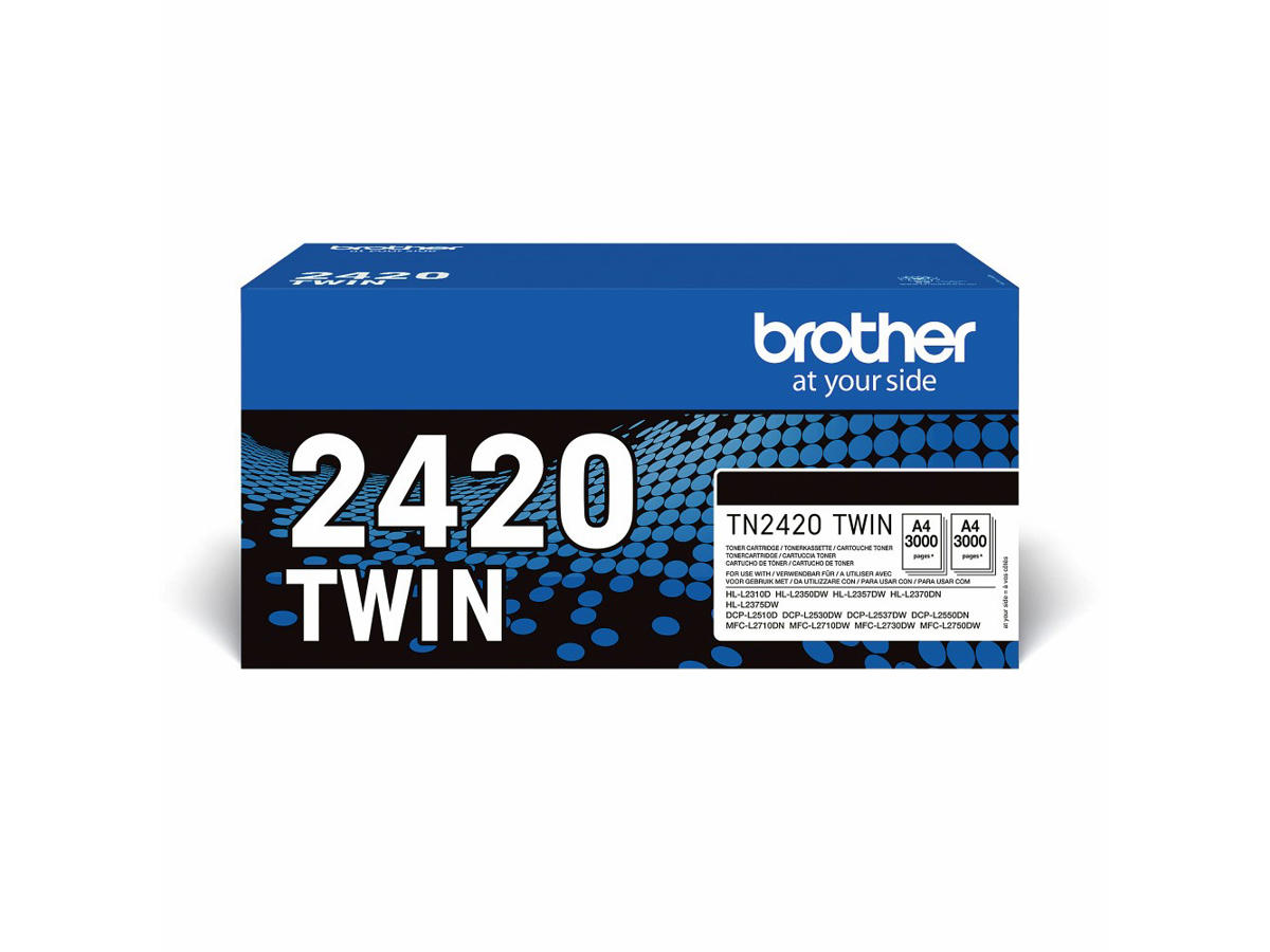 TN2420TWIN passer til følgende printer: DCP L 2510 D, DCP L 2530 DW, DCP L 2537 DW, DCP L 2550 DN, HL L 2310 D, HL L 2350 DW, HL L 2357 DW, HL L 2370 DN, HL L 2375 DW, MFC L 2710 DN, MFC L 2710 DW, MFC L 2730 DW, MFC L 2735 DW, MFC L 2750 DW