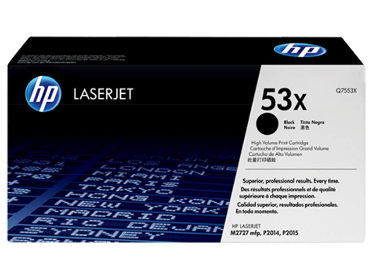 Q7553X passer til følgende printer: LaserJet M2727 MFP, LaserJet P2012, LaserJet P2013, LaserJet P2014, LaserJet P2014n, LaserJet P2015, LaserJet P2015 X, LaserJet P2015d, LaserJet P2015dn, LaserJet P2015n