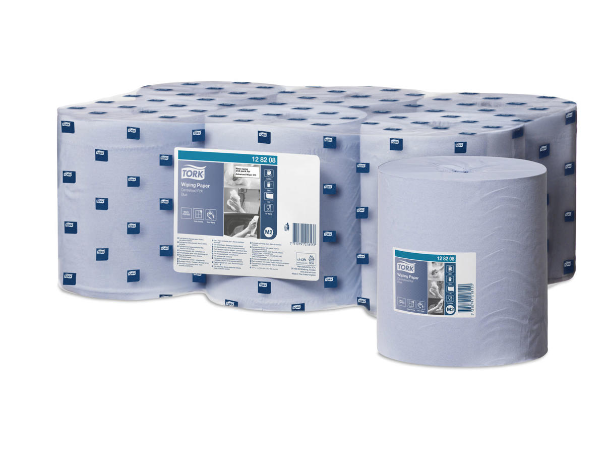 Aftørringspapir Tork M2 128208 Standard 1-lags blå 6 rl.