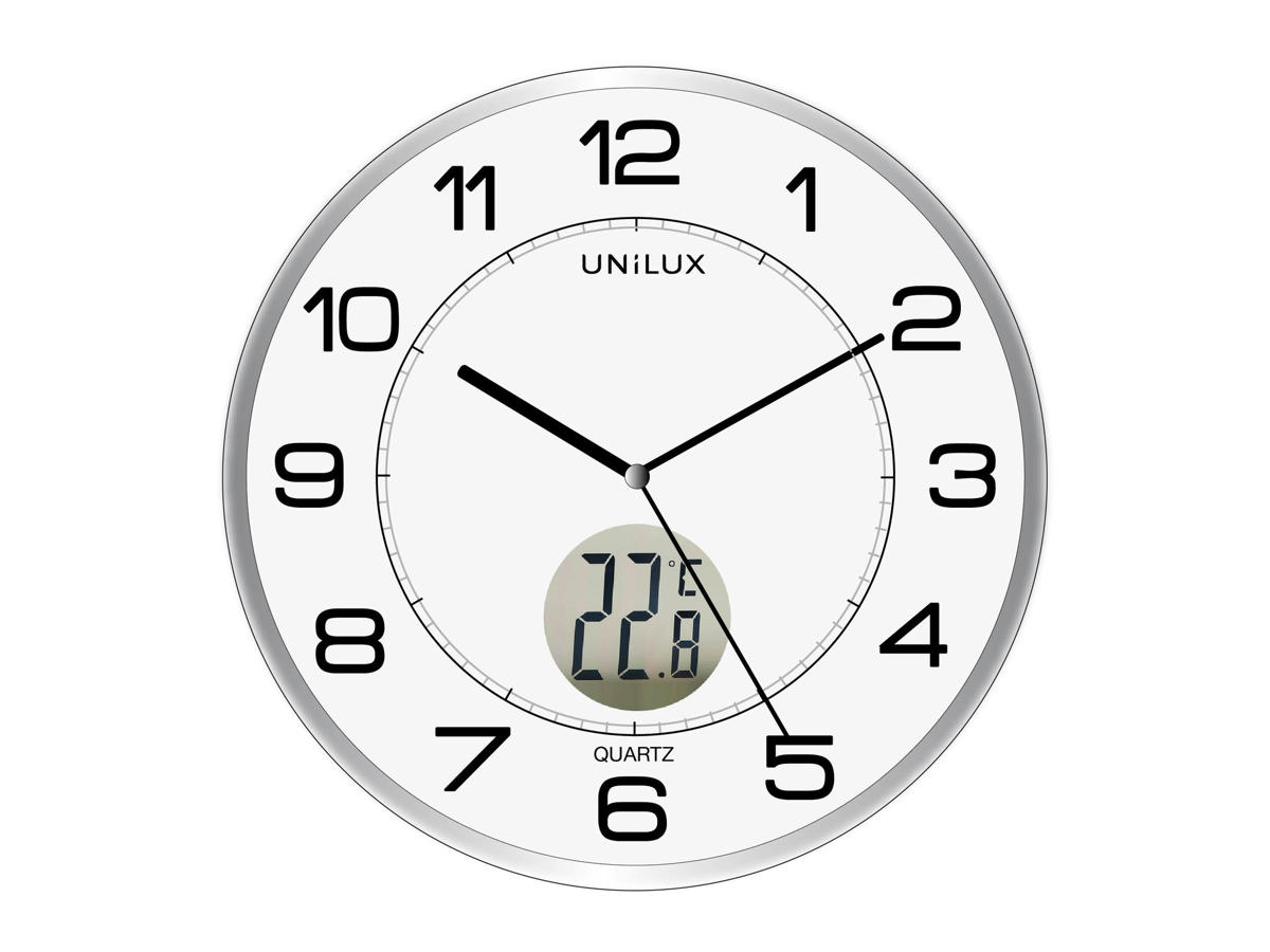 Præcision og elegance. Unilux vægur Tempus har temperaturvisning og timeindikator med tal.
