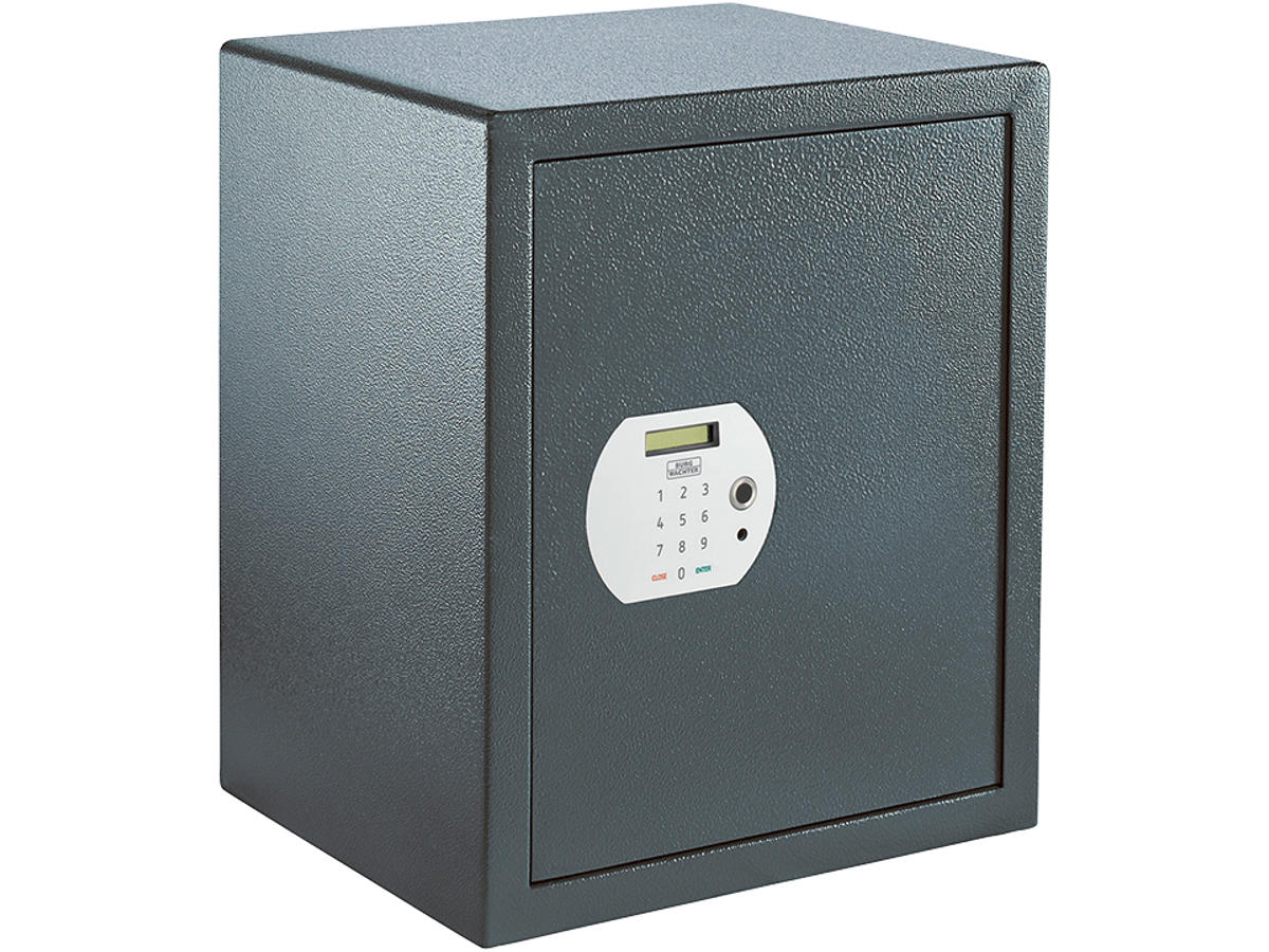 Pure-safe værdiskab, nøgle, elektronisk og fingerprint lås. 500 x 416 X 350 mm, 26 kg.