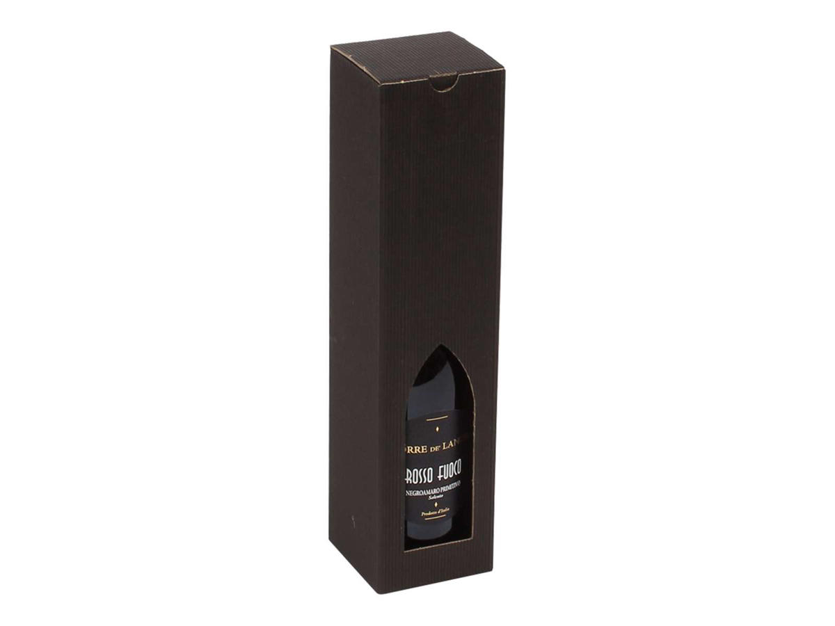 Flot, sort vingaveæske i bølget karton med plads til 1 vinflaske.