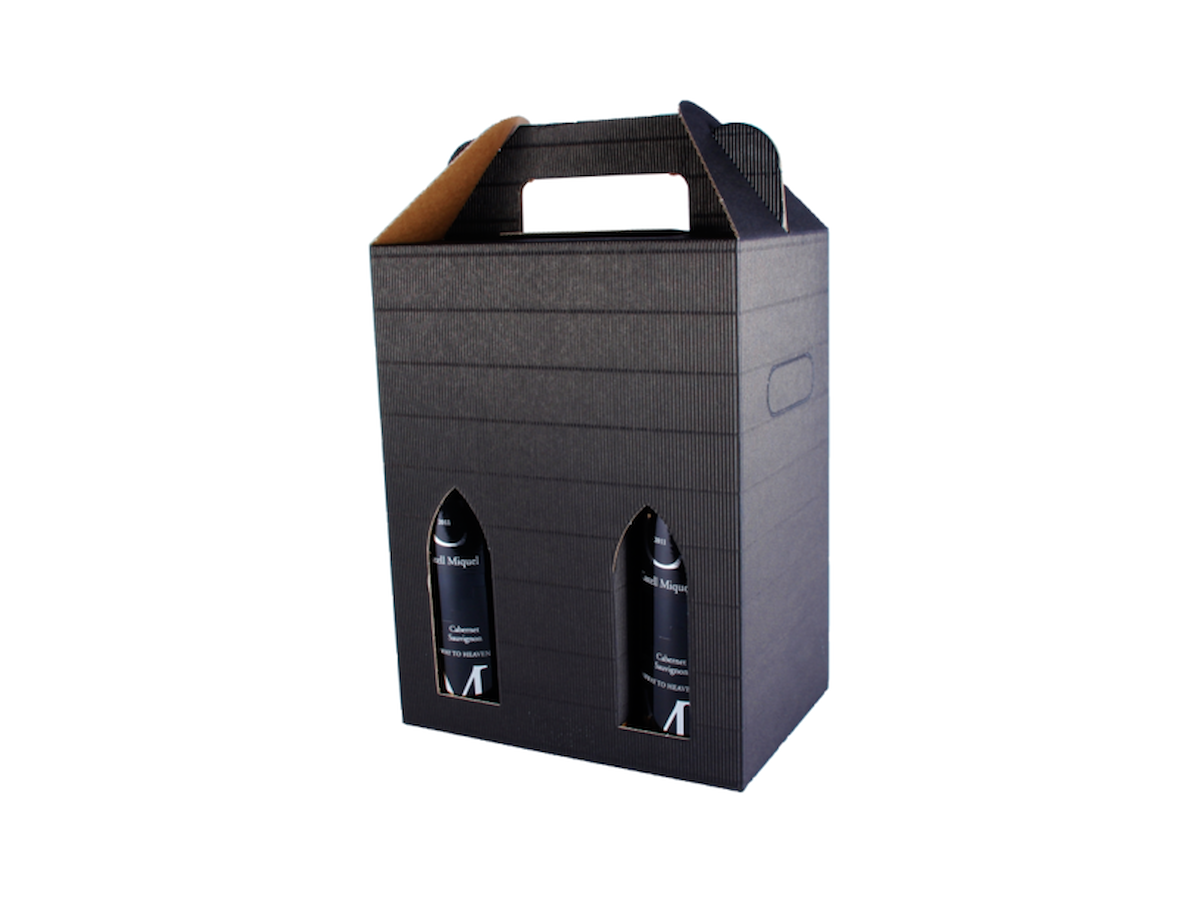 Gaveæske i kraftigt sort bølgepap til 6 flasker. Størrelse: 25,5 x 17 x 33,5 cm (B x D x H). Højdemål angivet excl. bærehåndtaget. Æsken leveres uden indhold.