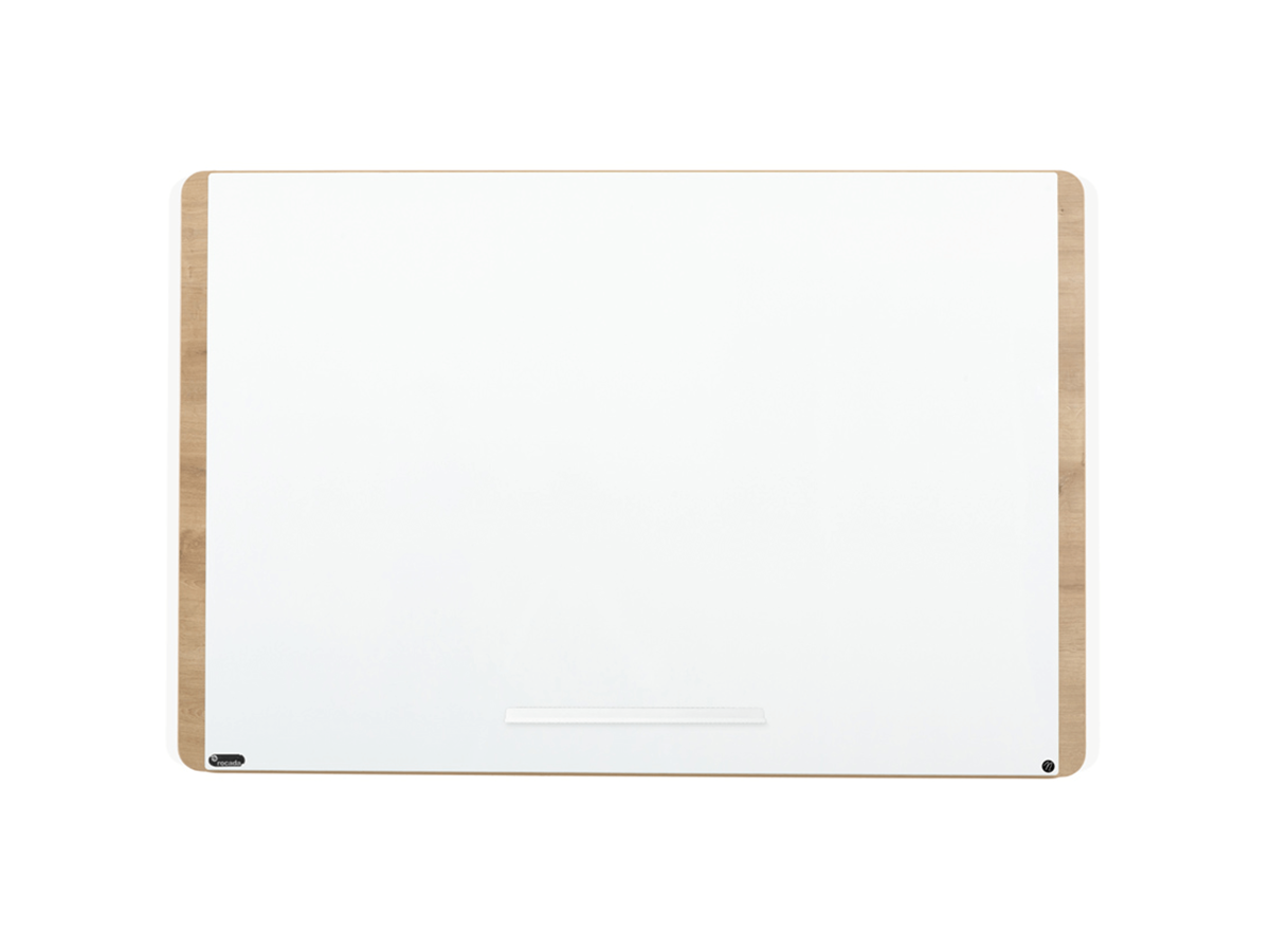 Rocada rammeløse, magnetiske whiteboard tavle i lakeret stål, med detaljer i melamin med flot træstruktur.